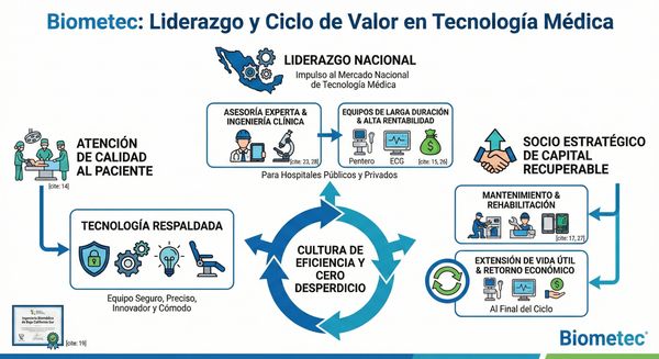 Soluciones de Ciclo Completo y SostenibilidadHoy, Biometec ofrece una solución integral a través de nuestra plataforma web y servicios técnicos: desde la venta e instalación, pasando por el mantenimiento y suministro de refacciones, hasta la rehabilitación y reventa del equipo al final de su vida útil primaria. Con este enfoque, reducimos el desperdicio, fomentamos la autosustentabilidad y maximizamos el retorno de inversión de cada equipo.